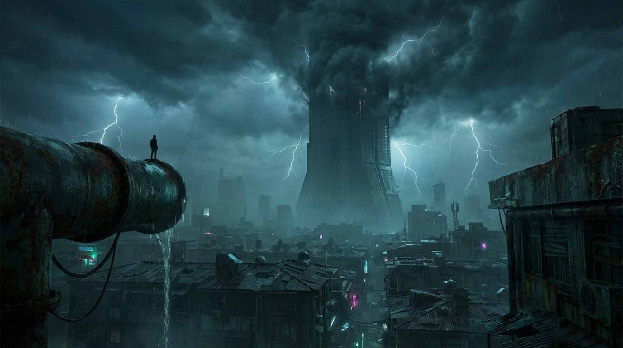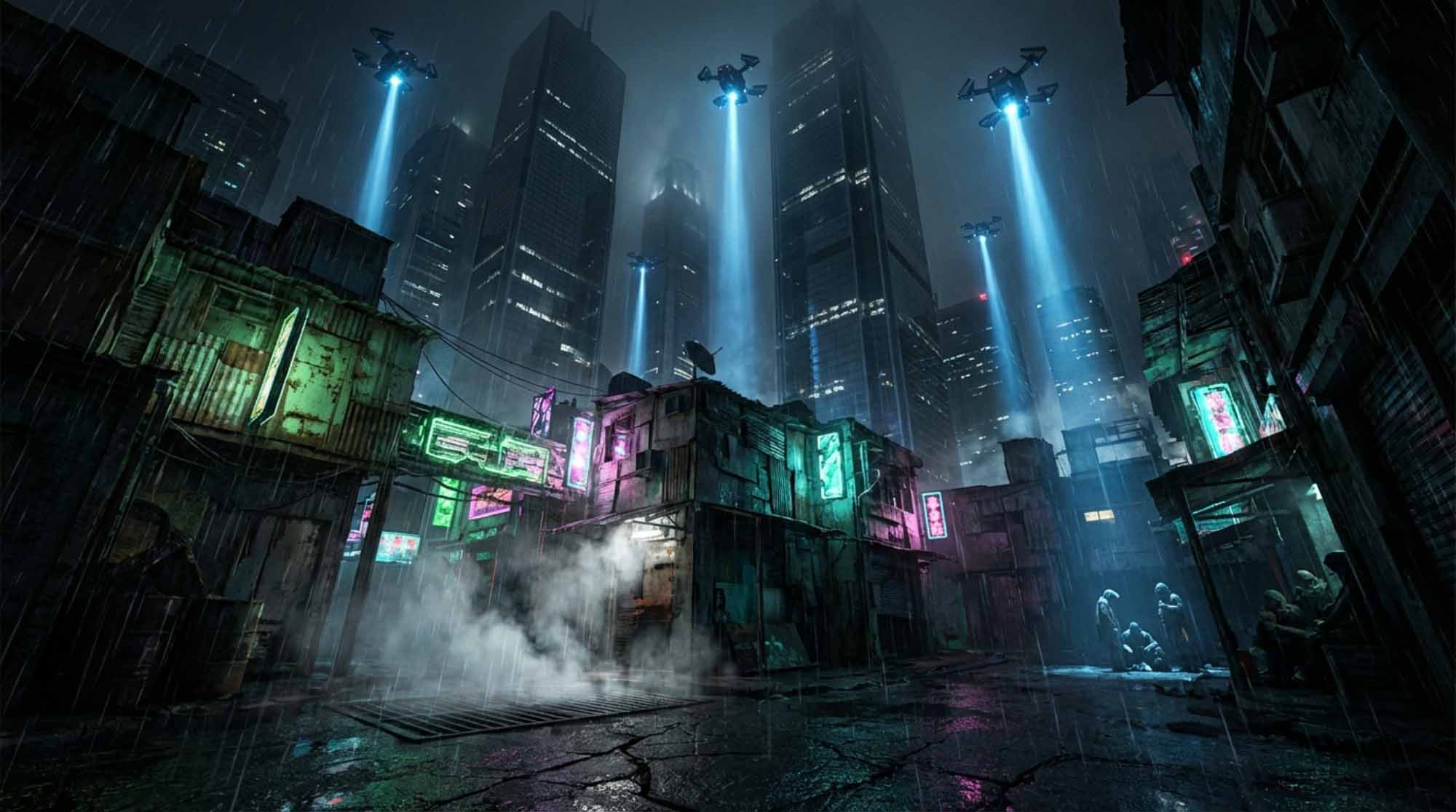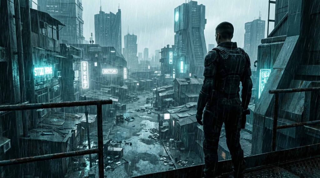 The year is 2350. New Horizon City is divided between pristine corporate enclaves and collapsing lower sectors ruled by neglect and control.